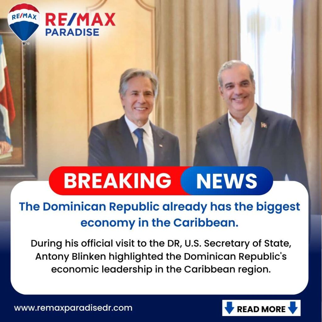 In a recent official visit to the Dominican Republic, U.S. Secretary of State Antony Blinken emphasized the strong and growing relationship between the U.S. and the Dominican Republic (DR). In his remarks, he made a pivotal statement that has investors around the world taking notice: “The Dominican Republic now has the largest economy in the Caribbean.”